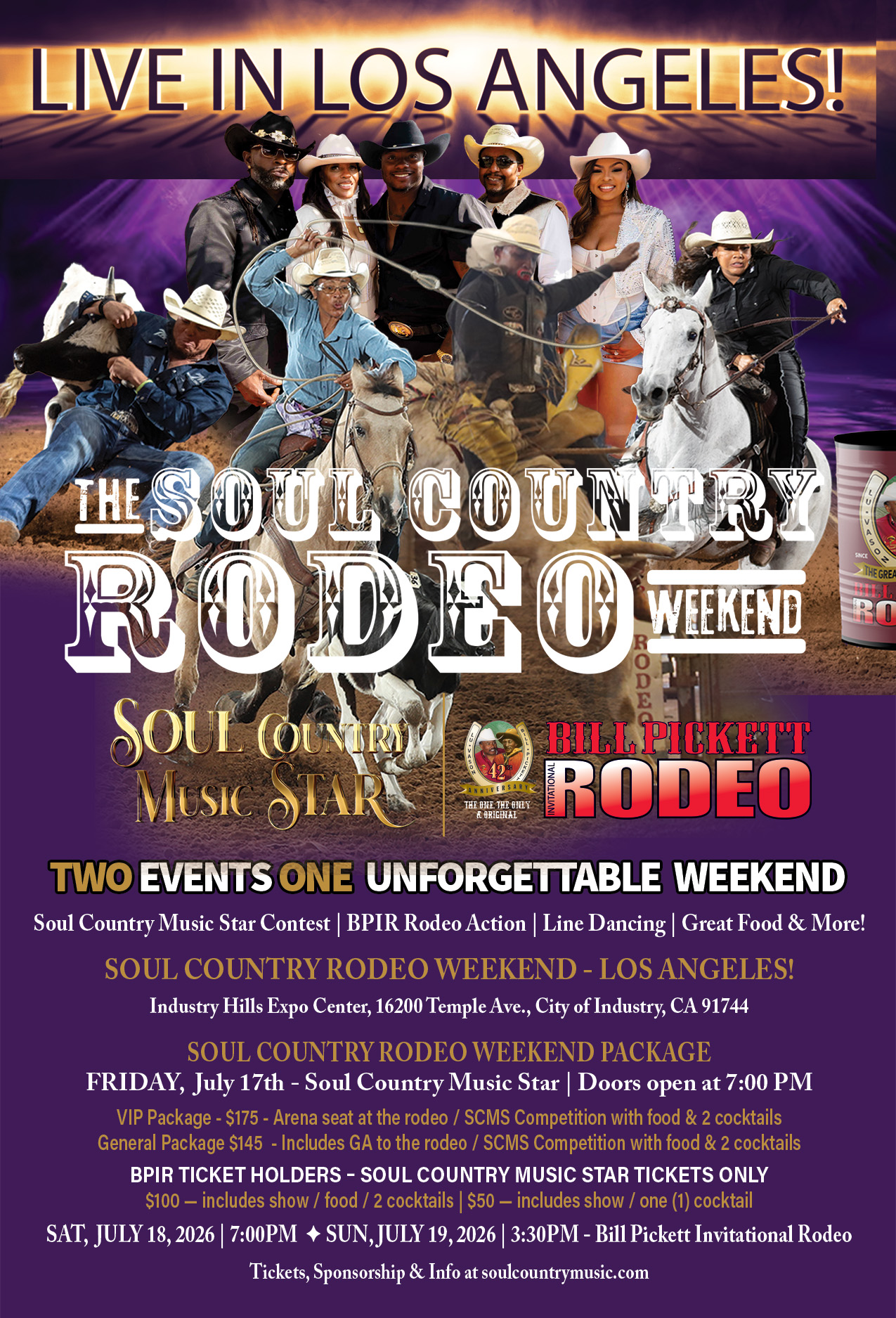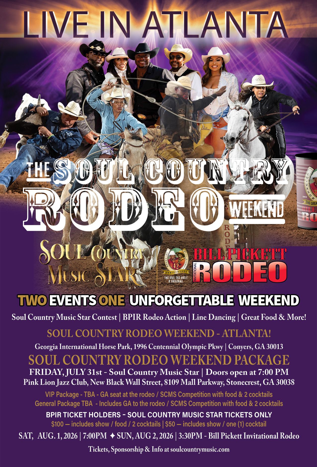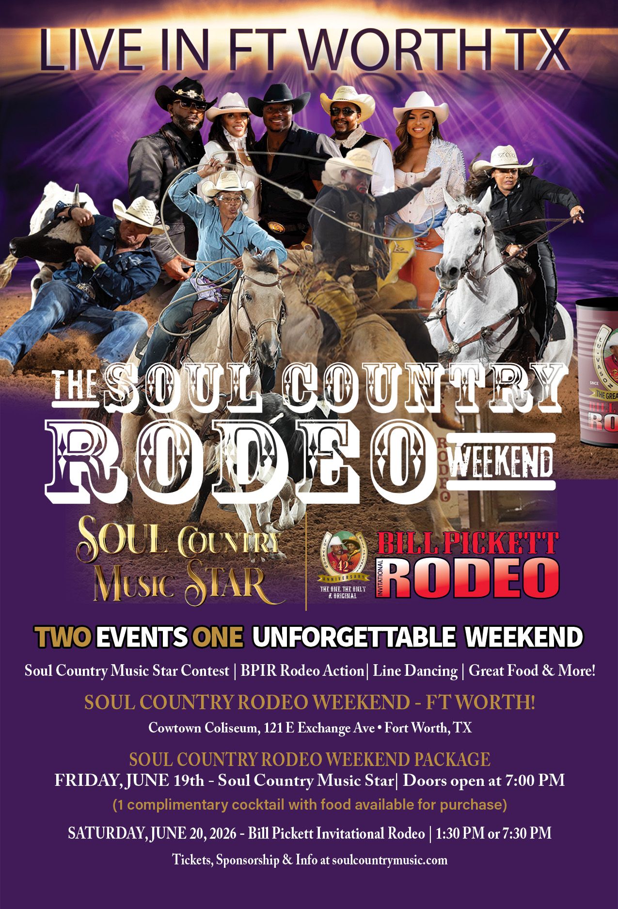 The top four (4) to six (6) Soul Country Music Star regional contenders will compete at a designated venue in each city where the Bill Pickett Invitational Rodeo and Soul Country Music Star present the Soul Country Rodeo Weekend.