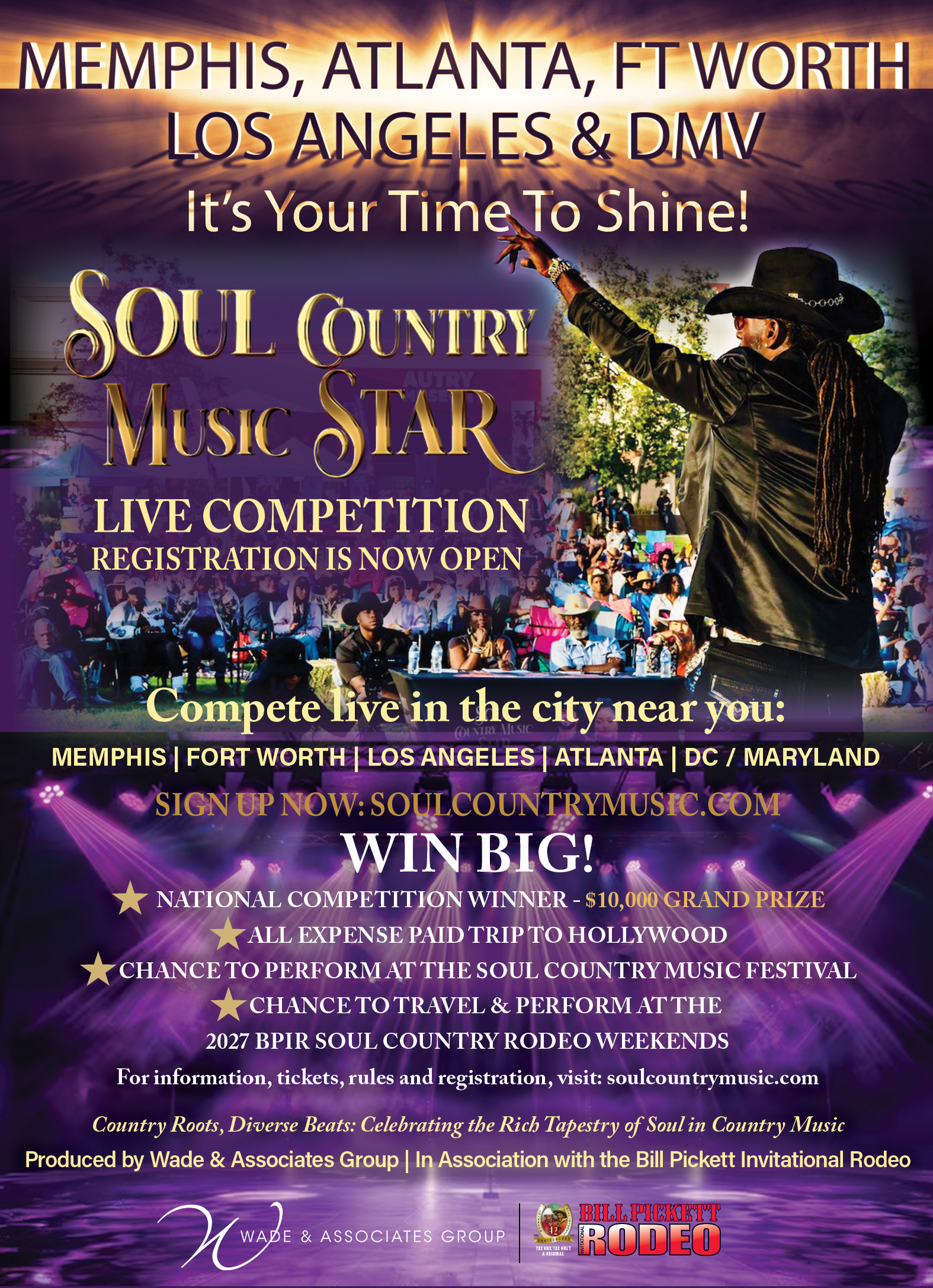 - Travel opportunity with the Bill Pickett Invitational Rodeo in 2027 as a Featured Country Music Artist